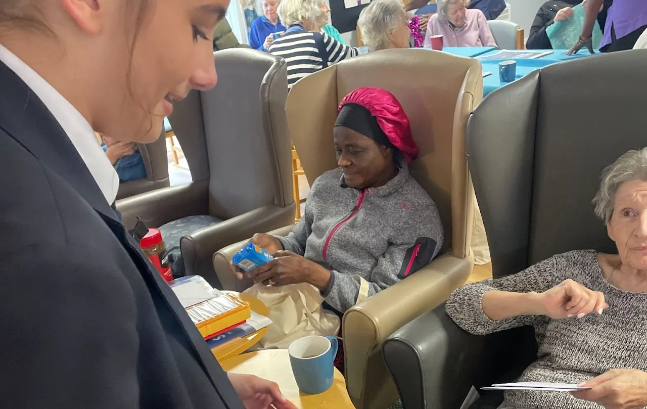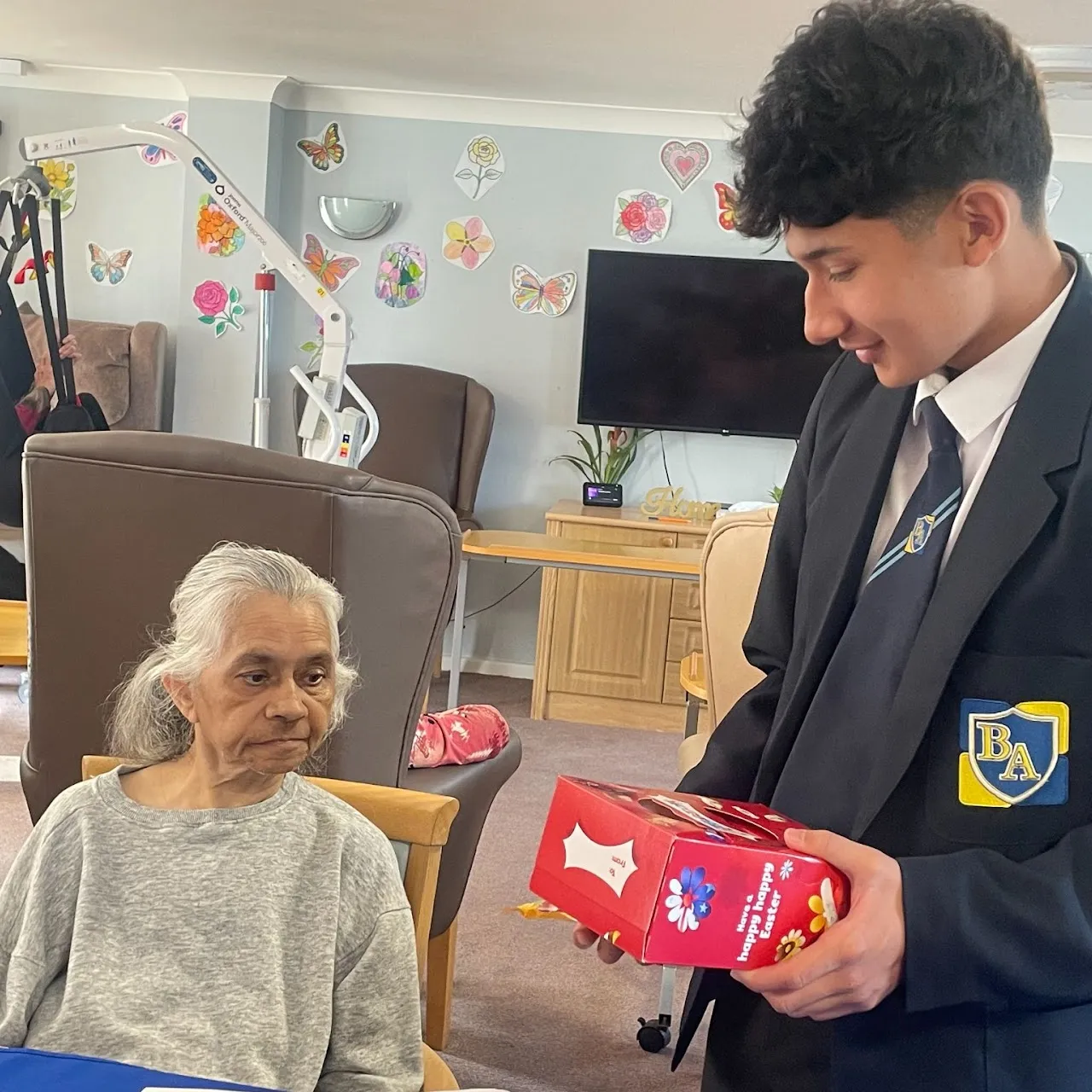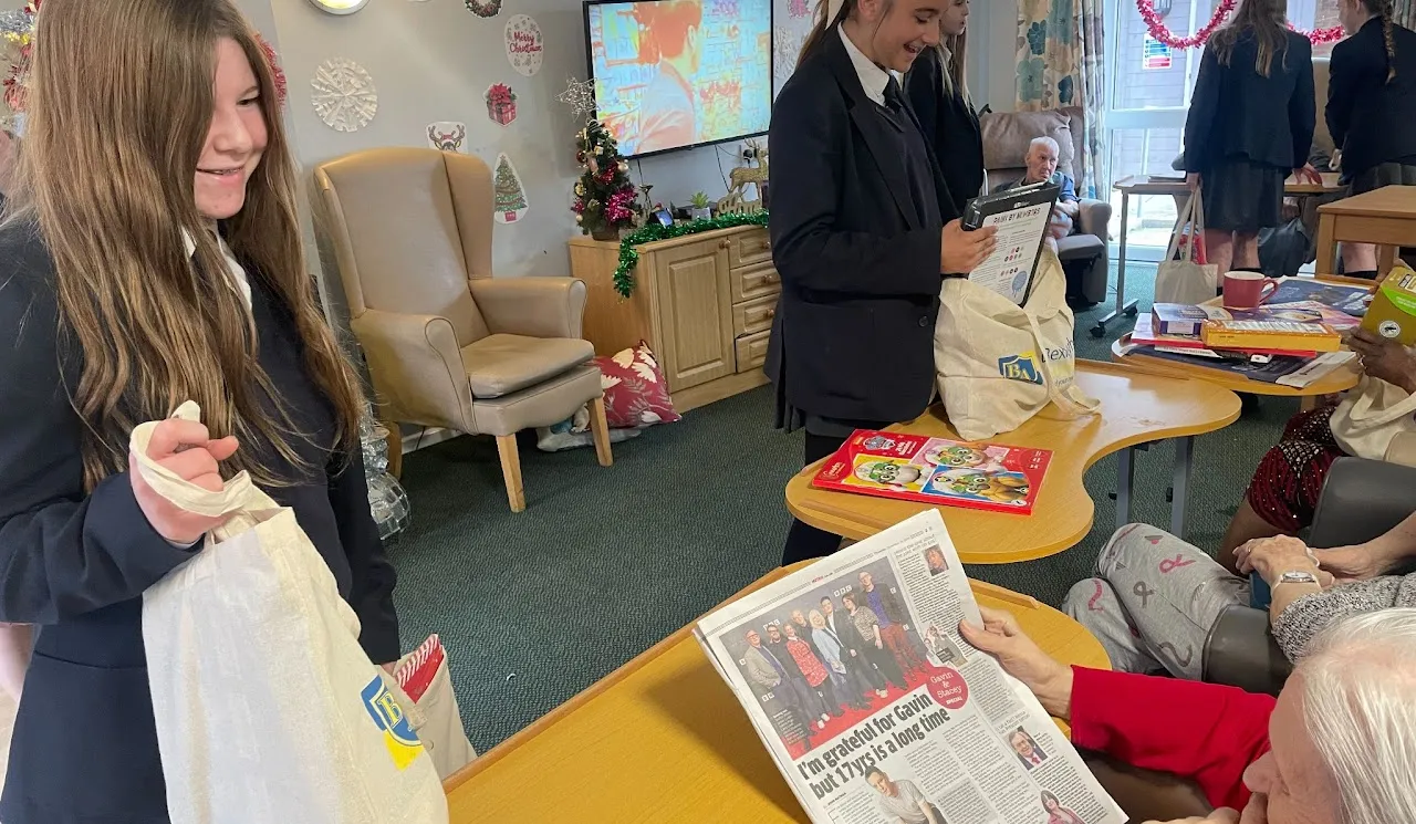 During the visit, students and staff spent valuable time with residents, offering companionship and conversation, especially meaningful for those who do not often receive visitors at this time of year. Each resident received a parcel filled with treats and thoughtful gifts, helping to create a warm and joyful Christmas atmosphere throughout the home.